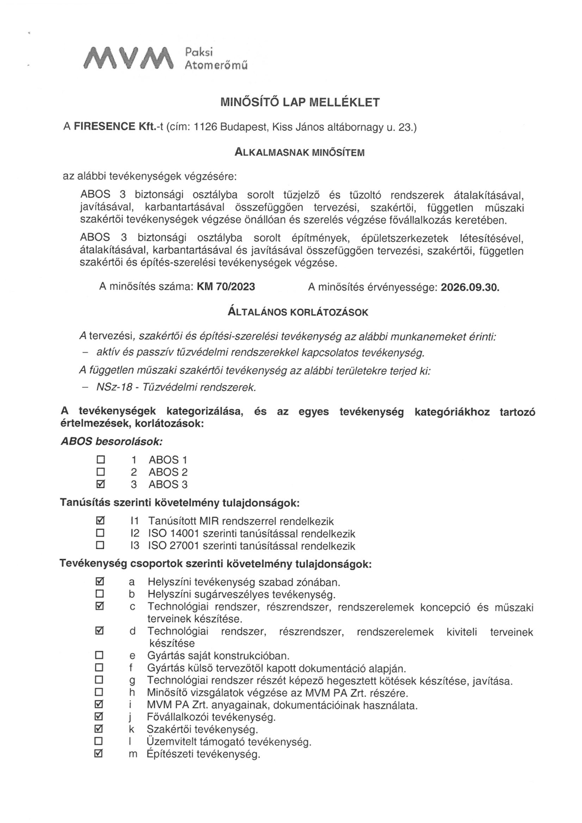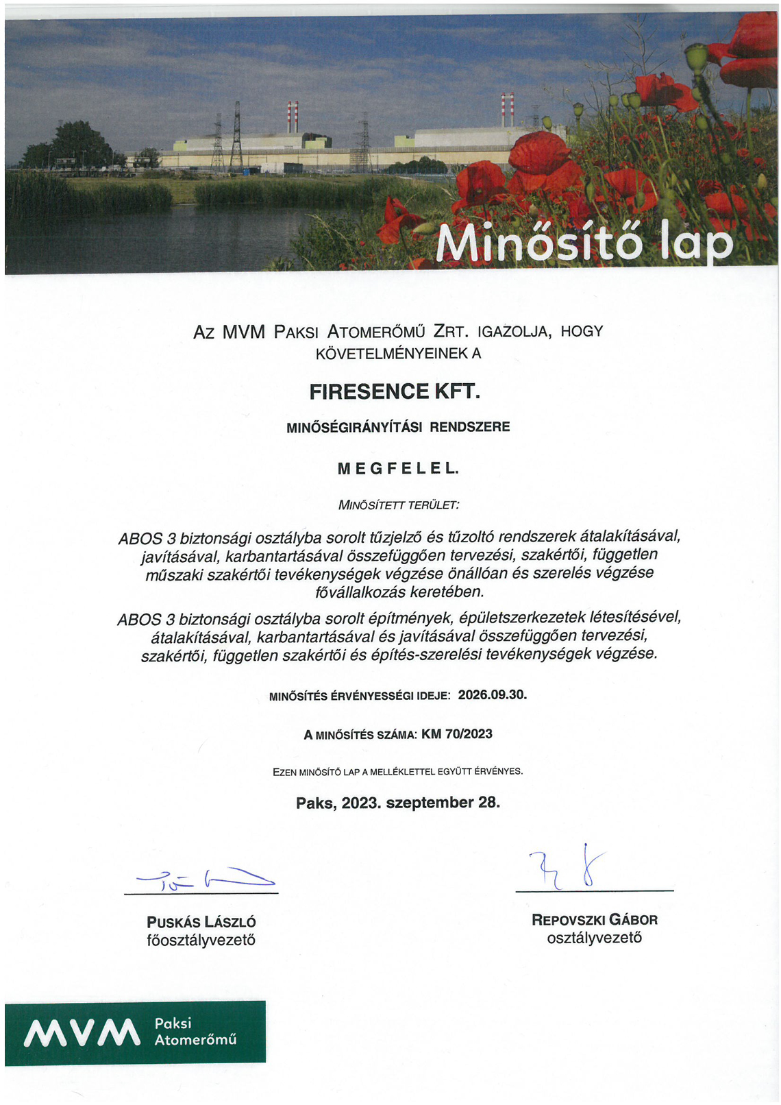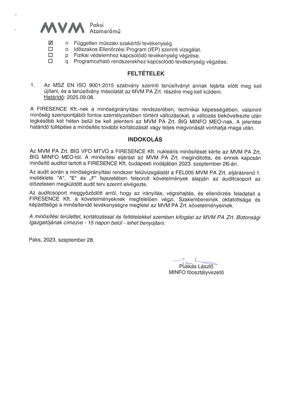 MINŐSÍTÉSEK - Nukleáris beszállítói minősítés